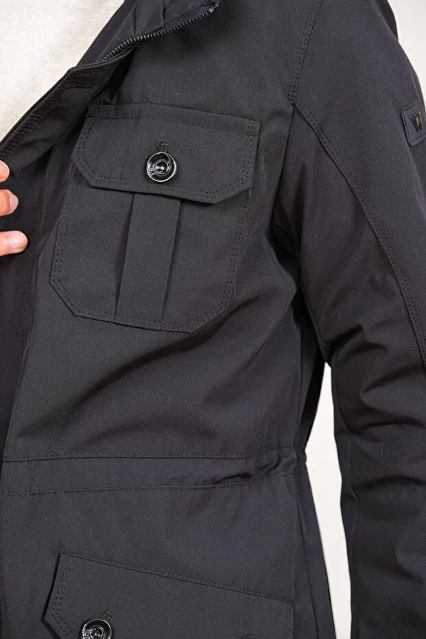 Erkek Kapüşonlu Parka – Dayanıklı dokuma kumaş, nefes alabilir yapı ve regular kesimiyle günlük kullanımda rahat, sıcak ve şık bir deneyim sunar.
